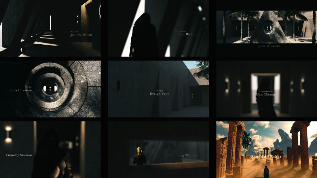 The title design integrates seamlessly with the keyframes, reflecting the tone and grandeur of the story—whether through weathered calligraphy, monolithic typography, or ethereal glows that suggest ancient power. Every element, from logo treatments to placement within scenes, has been crafted to feel authentic, as if it belongs in an actual production.