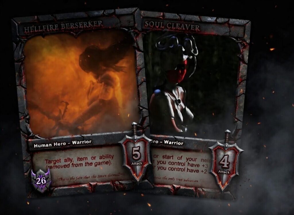 Final trading card designs for gameplay and collectible use
